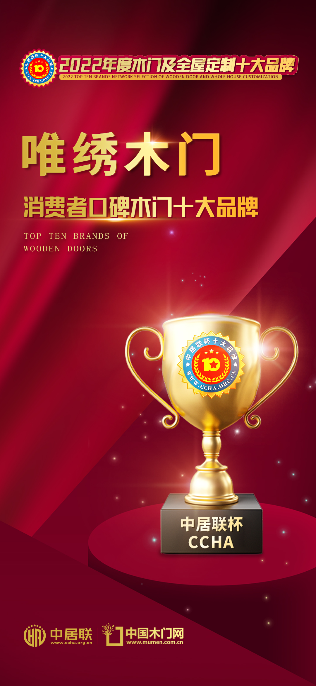而唯繡木門在本次評選活動中榮獲了2022年度消費者口碑木門10大品牌的殊榮。這不僅僅是一個頭銜和獎杯,更是廣大消費者對唯繡木門產(chǎn)品的喜愛和認可。這份殊榮也會激勵著我們繼續(xù)保持初心,砥礪前行,把潮流設(shè)計、健康唯美的家居帶給更多國人!